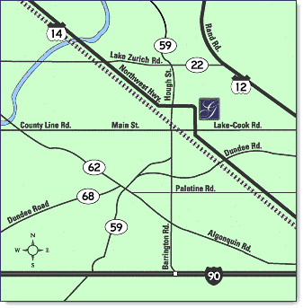 North to Lake-Cook Road. Go west toward central Barrington. Turn
